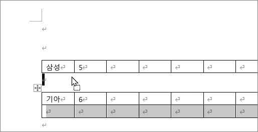 다른 방법으로 표에서 분할하고자 하는 부분의 열에 마우스 커서가 위치한 상태에서 단축키 Ctrl+엔터를 눌러 줍니다.