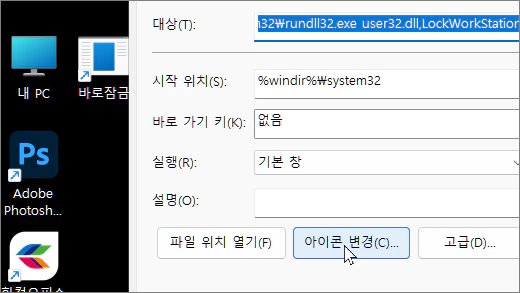 즉시 잠금 화면 아이콘 윈도우 바탕 화면에 만들기