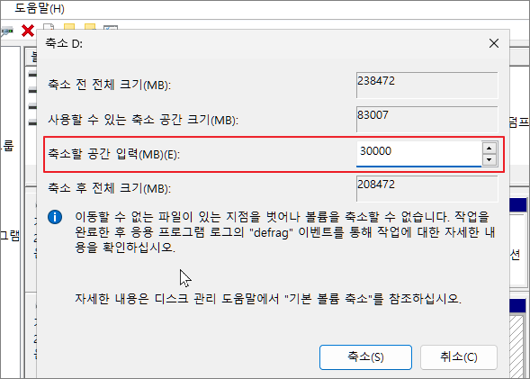 윈도우 등의 데이터가 있는 디스크에서 새로운 파티션 만들기