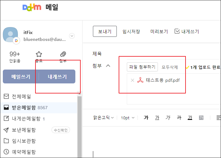 PC에서 자신의 이메일 계정을 연다음 자신에게 메일 쓰기 기능을 이용해 이메일을 작성한 다음 해당 PDF 파일을 첨부하고 발송하기 버튼을 누르면 됩니다.