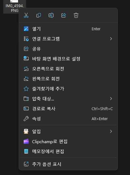 윈도우 11에서 마우스 우클릭을 하면 다소 낯선 형식의 우클릭 메뉴들이 보입니다.