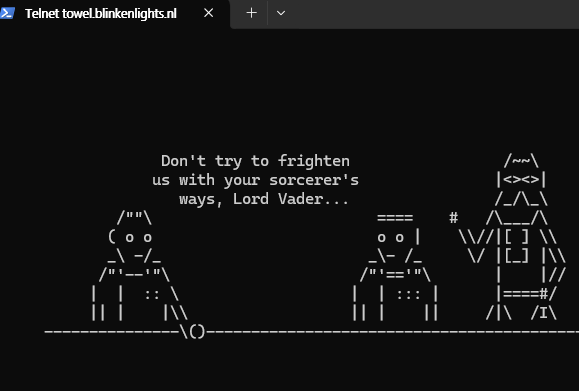 그다음 아래의 코드를 복사해 붙여넣기한 다음 엔터키를 누르면 이스터 에그인 스타워즈 에피소드를 볼 수 있습니다.
