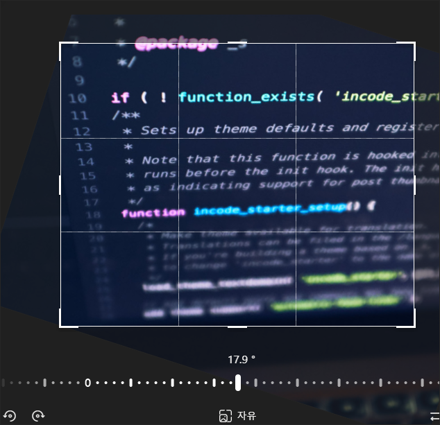 하지만 윈도우 기본 앱 중 하나인 사진 앱에서도 고급 이미지 편집 프로그램 못지 않은 기능으로 이미지의 미세 각도 조절, 위치 조절 작업이 가능합니다.
