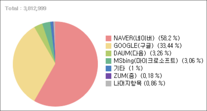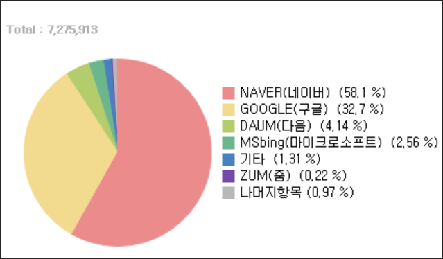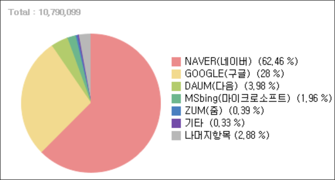이하의 국내 검색엔진별 점유율에 관한 자료는 인터넷 트렌드 자료를 참조하여 작성하였습니다.