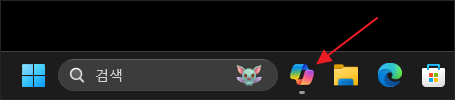 위와 같이 생긴 아이콘이 코파일럿의 바로가기 아이콘입니다. 위치는 작업 표시줄의 검색 입력창 바로 옆에 위치하고 있습니다.