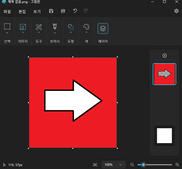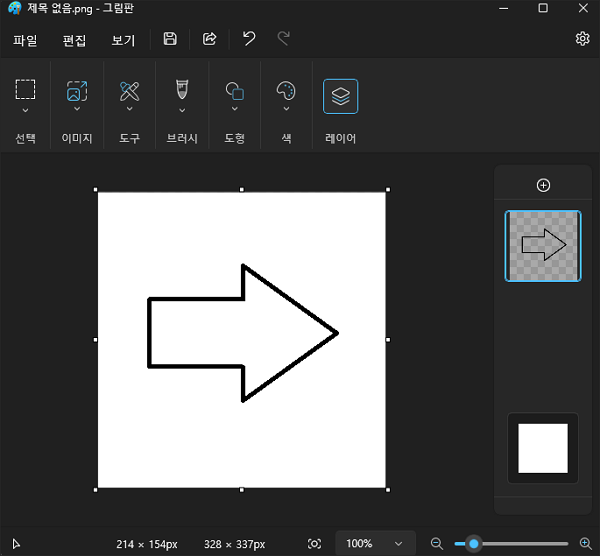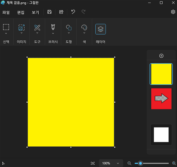 그림판 최신 버전에서는 우측 상단에 레이어 버튼이 추가되었습니다.