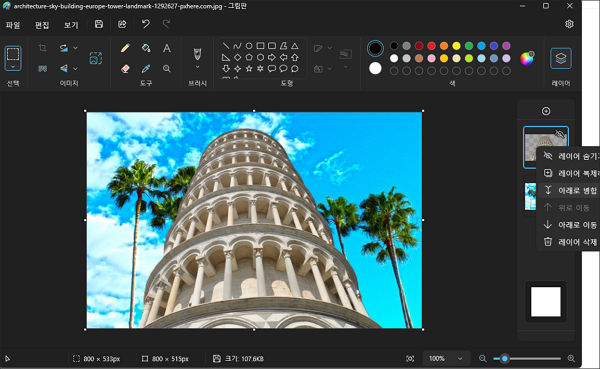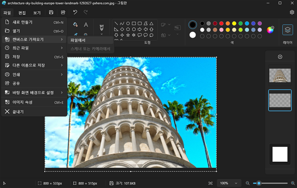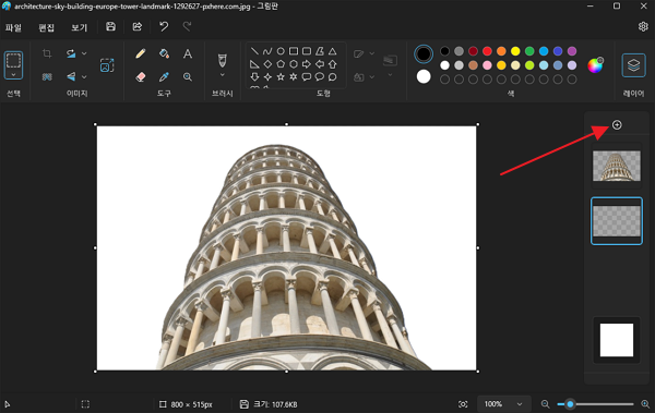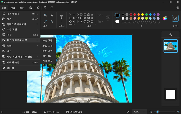 아래에 첨부된 피사의 사탑 샘플 이미지를 그림판에서 불러옵니다.