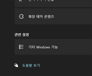 윈도우 설정 > 시스템 > 선택적 기능으로 진입한 다음 우측 내용의 가장 하단 부분에 있는 기타 Windows 기능을 클릭합니다.
