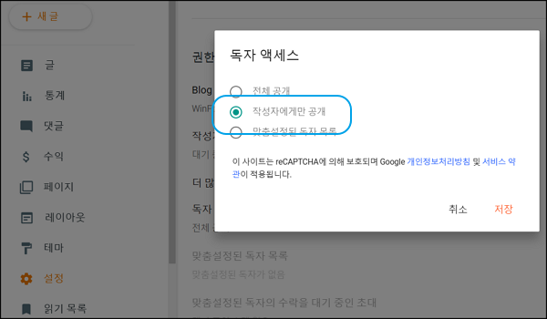 구글 블로그를 백업하기 위해 전체 비공개로 전환하는 방법