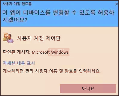 1. UAC 팝업창에서 아니요 버튼만 존재하는 경우