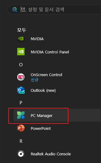 만일, 설치되어 있지 않다면 작업 표시줄에 있는 가방 모양의 MS 스토어를 클릭하고 PC 매니저를 검색해 설치할 수도 있습니다.