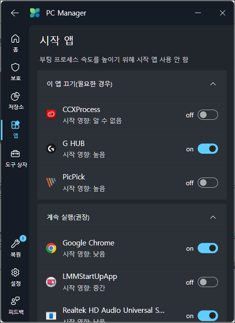 윈도우 최적화 프로그램 추천 리뷰 : 마이크로소프트 PC 매니저