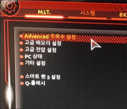 2. M.I.T. 메뉴에서 Advanced 주파수 설정을 클릭합니다.