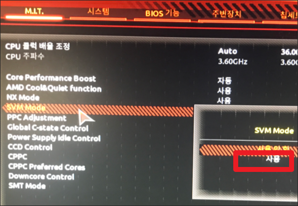 기가바이트 보드 및 AMD CPU에서 인텔 VT 모드를 활성화 시키는 방법