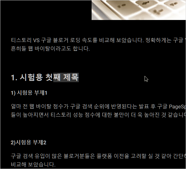 이렇게 되면 글 내용의 본문 내에서 목차들을 주 제목 바로 아래의 제목부터 부제목, 소제목 모두를 사용하더라도 자연스럽게 h1, h2, h3, h4로 흘러가는 것을 확인할 수 있습니다.