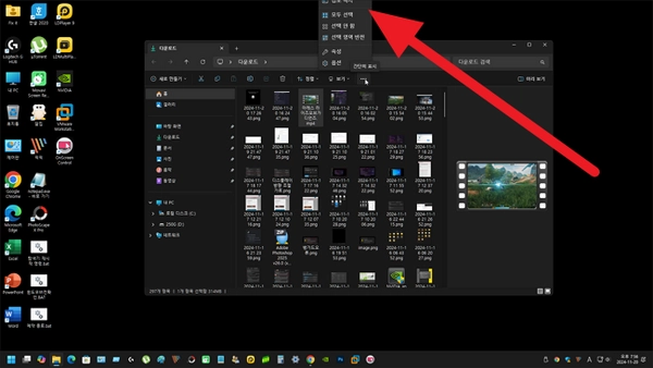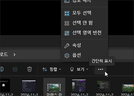 윈도우 11에서 탐색기를 열고 상단의 3점 메뉴를 클릭할 경우 메뉴 리스트가 상단으로만 향하게 나와 위쪽 부분이 잘리는 오류가 있습니다. 이는 원칙적으로 돌출될 옵션 리스트가 잘릴 정도의 위치에서 메뉴를 클릭하면 아래쪽으로 펼쳐져야 함에도 불구하고 위로만 펼쳐지는 데서 생기는 오류입니다.