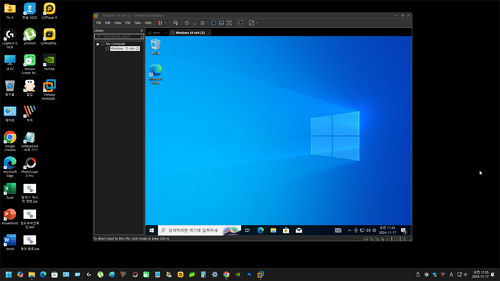 아래의 이미지는 테스트를 위해 윈도우 11을 사용 중인 시스템에 vmware 윈도우 10의 설치를 무사히 마친 이미지입니다.