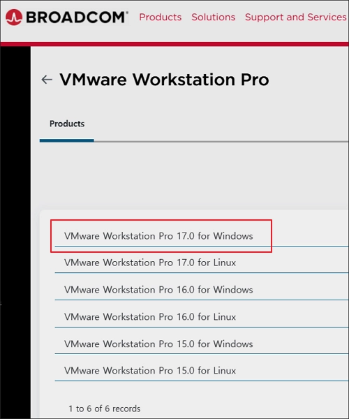 다운로드 페이지의 목록 중 VMware Workstation Pro를 클릭한 다음 최신 버전을 다운로드하시기 바랍니다.