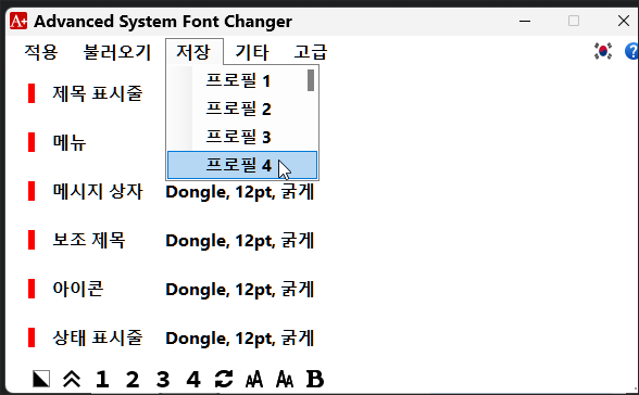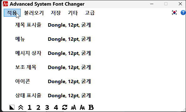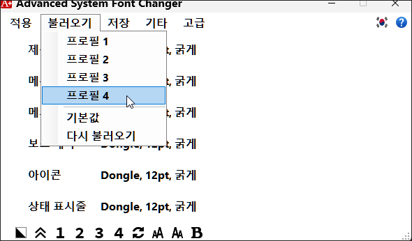 마지막으로 적용을 누르면 해당 프로필로 윈도우 폰트들이 변경됩니다.