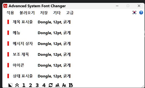 위의 프로그램에 대한 개인적인 의견은 윈도우 폰트가 복잡하게 꼬이거나 어지러울 때 윈도우 기본 폰트 상태로 되돌리는 용도 또는 윈도우의 특정 영역만 글씨 크기를 조절하는 용도로 사용하면 좋지 않을까 생각합니다.