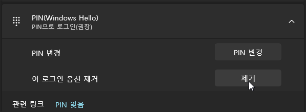 PIN 옵션이 제거되면 아래와 같은 모습입니다.