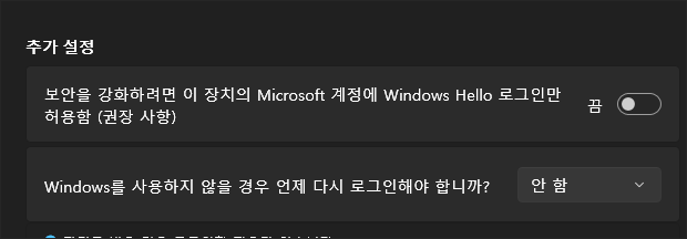 1. 윈도우 로그인 옵션 추가 설정 끄기