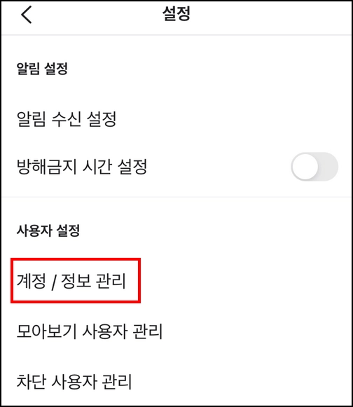 1. 당근 > 설정 > 계정 및 정보 관리 항목을 선택합니다.