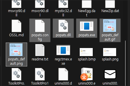 아래의 이미지는 제가 알집을 사용하고 있으므로 C:\Program Files (x86)\ESTsoft\ALZip 폴더로 이동한 다음 Popats가 들어간 모든 파일을 삭제한 이미지입니다.