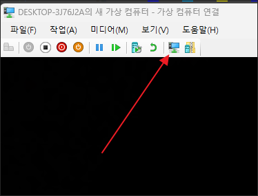 이 문제를 해결하려면 먼저 기본 세션 모드로 가상 머신 운영체제를 실행하고 로그인합니다. 만일 고급 세션 모드가 실행 중이라면 상단의 기본 세션 모드 전환 아이콘을 클릭해 전환해 줍니다.