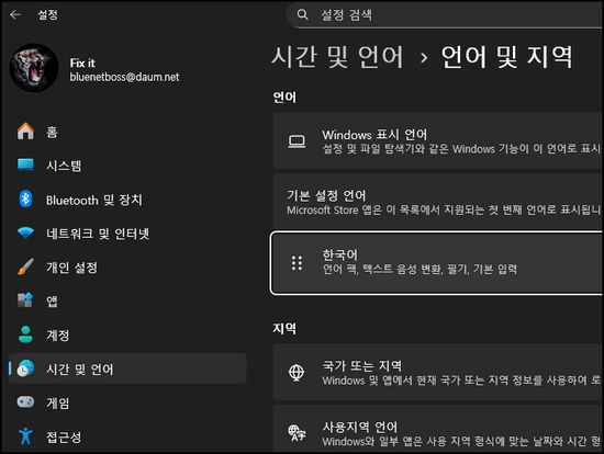 즉, 과거 제어판에서 일부 담당하던 언어 옵션 관련 설정은 업데이트된 윈도우 버전에서는 이용할 수 없는 방법입니다.