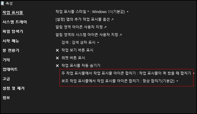 만일, ExplorerPatcher에서 옵션이 설정 가능하다면 이를 통해 수정을 시도해 볼 수 있습니다.