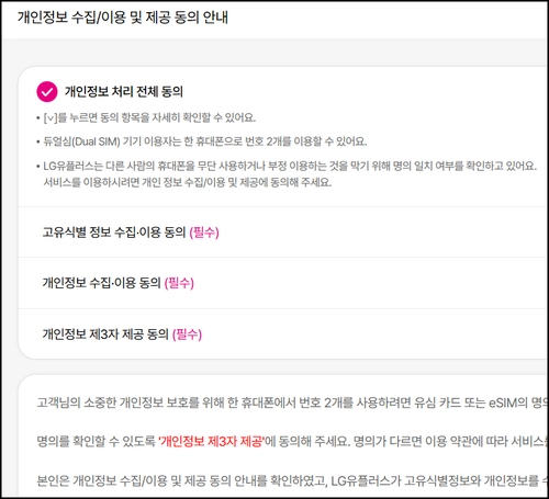 아래의 이미지는 제가 기입중인 유플러스의 인증 링크입니다.
