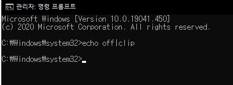 off와 clip 사이의 세로바는 키보드의 엔터키 바로 옆에 있는 원화표시 키를 쉬프트 키를 누른 채로 치면 나오는 문자입니다. echo off|clip는 복사되어 있는 메모리 클립보드의 내용을 모두 비워서 초기화하라는 명령어 입니다.