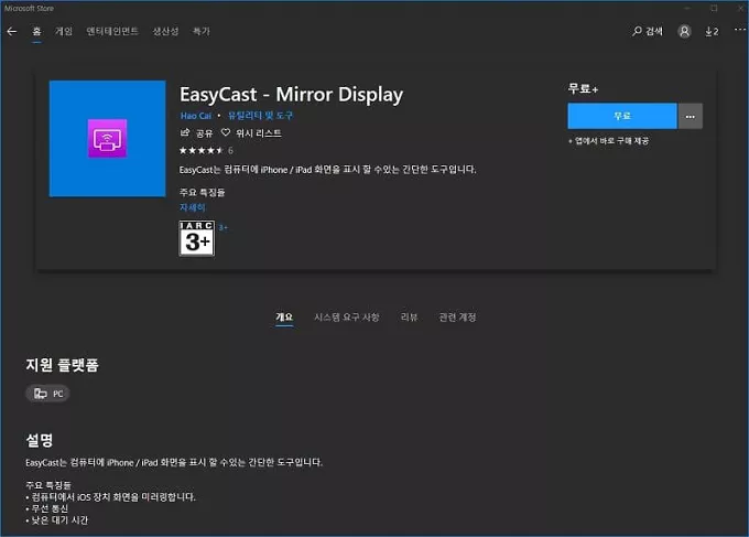 MS 스토어로 이동하신 다음 검색에 Easycast - Mirror display 라고 검색한뒤 다운로드 및 설치하시면 됩니다.