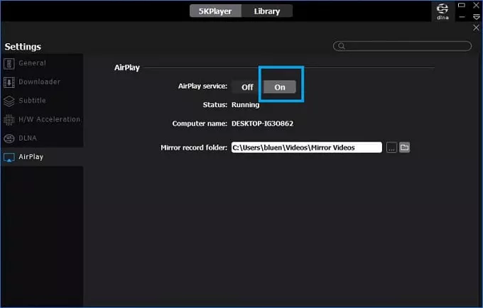 아래와 같이 airplay 탭에서 airplay service 를 on 으로 켜두시기 바랍니다. 유선(usb)뿐만 아니라 무선일 경우에도 지원하기 위함입니다.