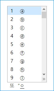 또 "ㅇ""뒤에 커서가 깜빡거리는 상태에서 한자 키를 누르면 아래와 같은 특수문자 페이지가 뜹니다.