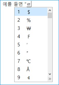 예를 들면 "ㄹ"뒤에 커서가 깜빡거리는 상태에서 한자 키를 누르면 아래와 같은 개별 특수문자들이 뜹니다.
