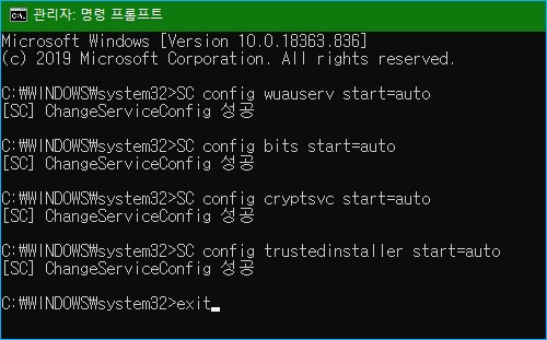 [SC] ChangeServiceConfig 성공이라는 메시지가 뜹니다.