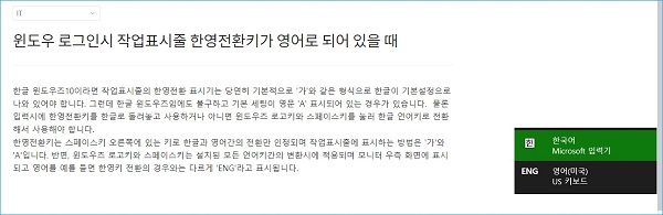 윈도우 로그인시 작업표시줄 한영전환키가 영어로 되어 있을 때