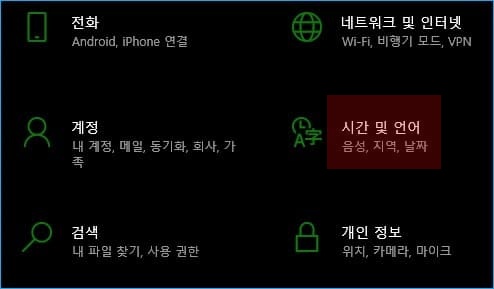 1. 윈도우즈 설정에서 시간 및 언어로 들어갑니다.
