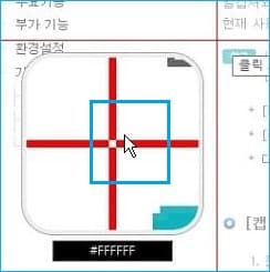 캡쳐 방식 중 직접 마우스로 영역을 지정하여 캡처하는 방식입니다. 특이한 점은 돋보기를 이용하여 선분을 시작할 지점의 위치를 정밀하게 잡을 수 있도록 도와주며 커서가 위치하는 지점의 색상 코드값까지 보여줍니다.