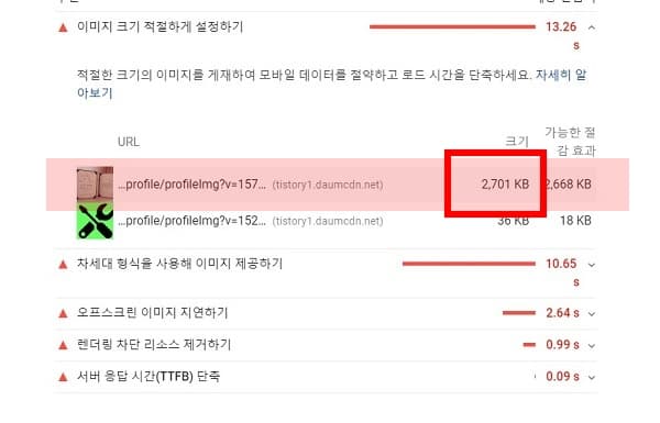 댓글 단 분의 조그만 사이즈일 거라고 생각했던 프로필 아이콘이 무려 2,701KB로 해당 페이지의 모바일 로딩이 느린 첫 번째 원인으로 작용하고 있었습니다.