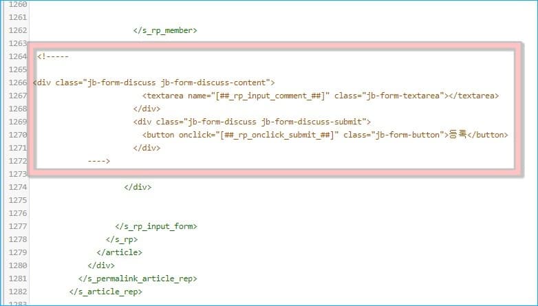 대략 1266번줄 쯤에서 찾아 볼 수 있는데, ##_rp_input_comment_##라는 문장을 검색하여 해당 위치로 이동합니다.