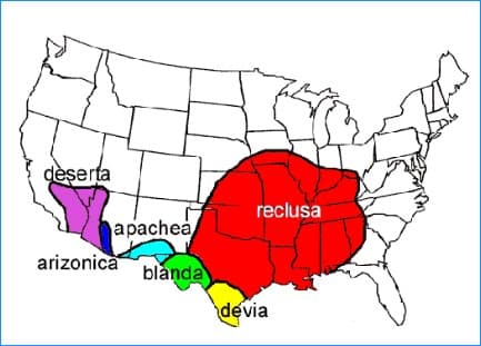 갈색 은둔 거미는 의학적으로 그 독이 매우 중요한 가치가 있다고 하는 데 그 이유는 강력한 독성 때문입니다. 한번 물리면 소량의 독액에도 물린 부위가 괴사해 들어가 응급처치를 하지 않아 다리를 절단한 경우까지 있다고 합니다. 그나마 천만다행인 것은 이놈의 주 서식처가 미국 일부와 남미로 제한되어 있다는 점입니다. 즉, 아래의 지도에서 빨간색으로 표시된 미시간주 일부 지역과 남미 일부에 한정하여 서식한다고 합니다.