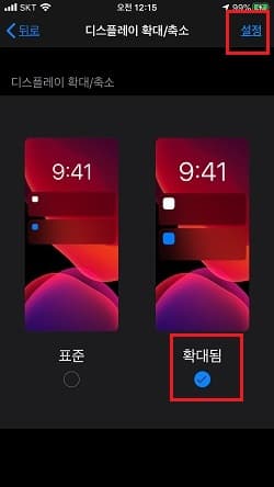 이 역시 텍스트 크기를 증가시키고 확대를 선택하면 함께 상승작용을 일으켜 노안이나 약시인 분들에게 굉장히 유용한 옵션입니다. 주의하실 점은 확대에 체크한 뒤 아이폰 우측 상단의 설정을 누르면 아이폰 하단에서 확대 사용이라는 버튼이 한번 더 나오게 되는 데 이것까지 눌러 주셔야 확대 옵션으로 설정되게 됩니다. 이때 아이폰이 1~2초간 꺼졌다 켜지며 확대 옵션이 반영된 아이폰 화면이 시작되게 되는 데 부담스럽다면 다시 기능을 끄거나 텍스트 옵션을 조절하여 나에게 알맞은 최적의 조합을 찾아내실 수도 있습니다.