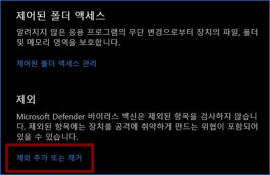중간쯤에 있는 제외 항목에서 제외 또는 추가를 클릭합니다.