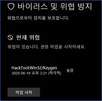 이때 위협 요소로 지목되던 삭제되지 않는 파일을 지정해 주면 작업이 끝이 납니다. 이렇게 하고 나면 경고 메시지도 나오지 않고 위협 요소가 없다고 나오게 됩니다. 다만, 이러한 작업은 악성 바이러스 등이 아니라는 확신이 들 때에만 시도하시기 바랍니다.