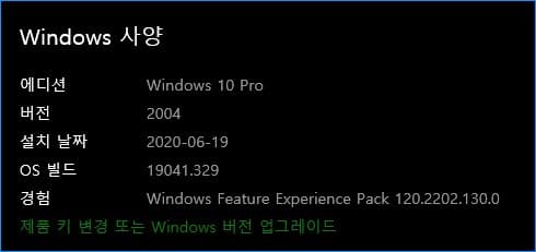 다운로드 및 설치에 약 1~2시간 이상의 시간이 소요됩니다. 제 PC사양이 좋지 못한 탓도 있지만 부분적으로 거의 모든 곳에서 이루어진 대규모 업데이트로 보입니다. 모든 설치작업이 끝나고 윈도우즈 설정의 시스템 정보를 확인해 보면 윈도우즈 버전 2004가 적용된 것을 확인할 수 있습니다.