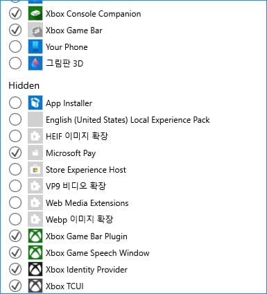 Xbox를 전혀 사용하지 않고 앞으로도 그럴 계획이 없는 분들에게는 쓸데없이 지속적으로 리소스나 잡아먹는 불필요한 골칫덩이일 뿐입니다. 그 외에도 Xbox관련 모든 앱, cortana, 피플, 웨더, 지도, 원노트, 스티키 노트, 윈도우즈 카메라 및 레코더 녹음기, 스카이프, 피드백 허브, 그루브 뮤직, MS Pay 등등 모두 함께 한 번에 삭제가 가능하니 끝까지 읽어 주시기 바랍니다.