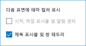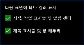 시작, 작업 표시줄 및 알림 센터의 컬러 표시를 선택할 수 없는 경우